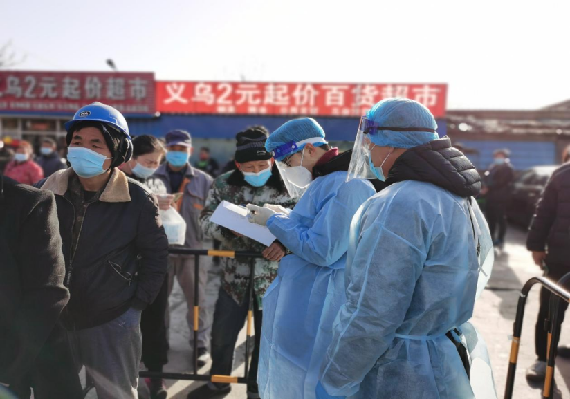海昌党员突击队充分发挥先锋模范作用,作为志愿者积极投身到疫情防控一线,协助社区开展“敲门行动”,在做好自身防护的前提下,挨家挨户上门排查核酸检测信息,每天工作12小时以上。